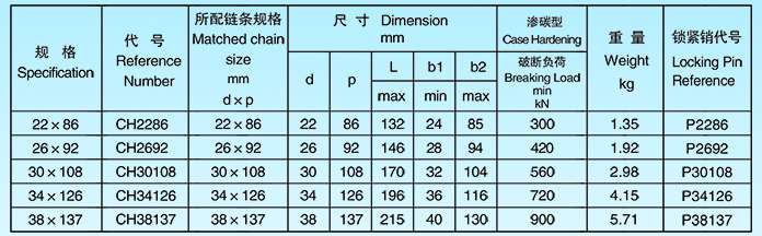 The hign stregth ,hign abrasion resistant arc-tooth connector is manufactured by the high alloy steel include the Cr,Ni,Mo element.Heat treatment finished in the air controlled funaces enabled the products has the feature of high abrasion resistant(Hardness over HV800,Carburization Depth 0.1d,Effective Hardened Layer 0.05d),high stregth (Breaking Force over 400N/MM2),easy installment (Both horizontally and vertacally used )and used widely in the slag -dredger conveying system of the generating station.We also offer universal chain connector .The size of the high stregth,high abrasion resistant arc-tooth connector meet the requirements of DIN22258 Part1 and MT/T99.