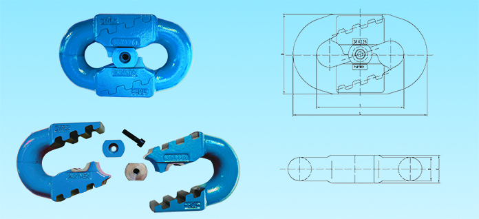 高强度、高耐磨梯齿型接链环采用了富含Cr, Ni, Mo元素的高合金钢制造而成,在可控气氛多用炉中完成渗碳热处理工艺,具有高耐磨(硬度 HV800 以上,渗碳深度0.1d,有效硬化层深度0.05d)、高强度(破断应力400N/mm2 以上)、安装方便(水平和垂直都能使用)的特点,广泛应用在电厂捞渣机传动系统上,并可提供常规热处理的通用型接链环。高强度、高耐磨梯齿型接链环中环外形尺寸符合DIN22258 Part1 和MT/T99标准要求。