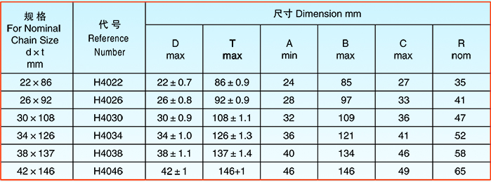 特殊材料的选择和较小的公差保证了弧齿型接链环不但便于安装,而且性能优于DIN标准的链环。